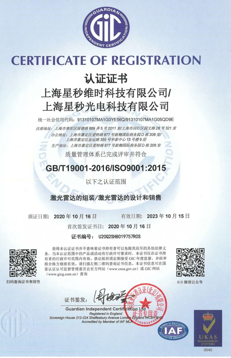 發證機構:   卡狄亞標準認證(北京)有限公司 發證時間 :   2020-10-16