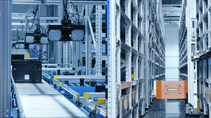 該智能硬件ODM企業(yè)在2560㎡的倉儲空間,部署海康機器人STU料箱機器人、輸送線及讀碼相機等設備,實現43000個庫位數萬種原料從中央倉到附件工廠的無人化自動出入庫與精準補貨。