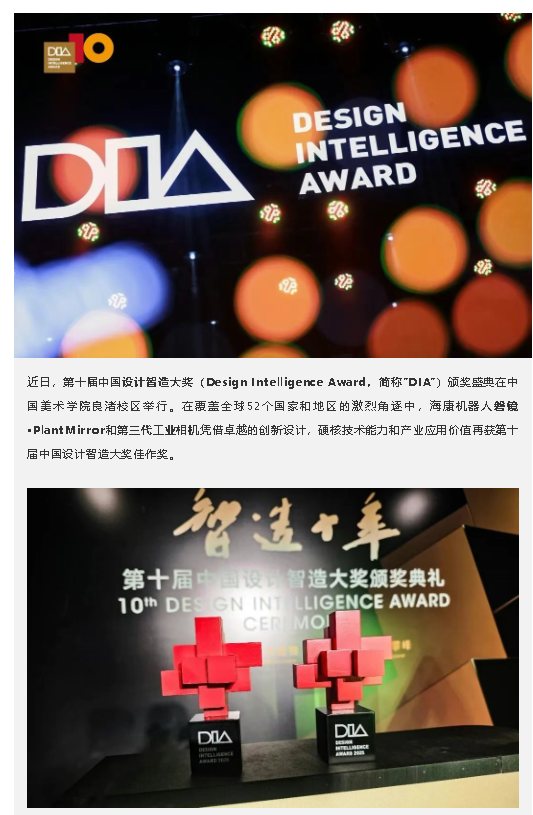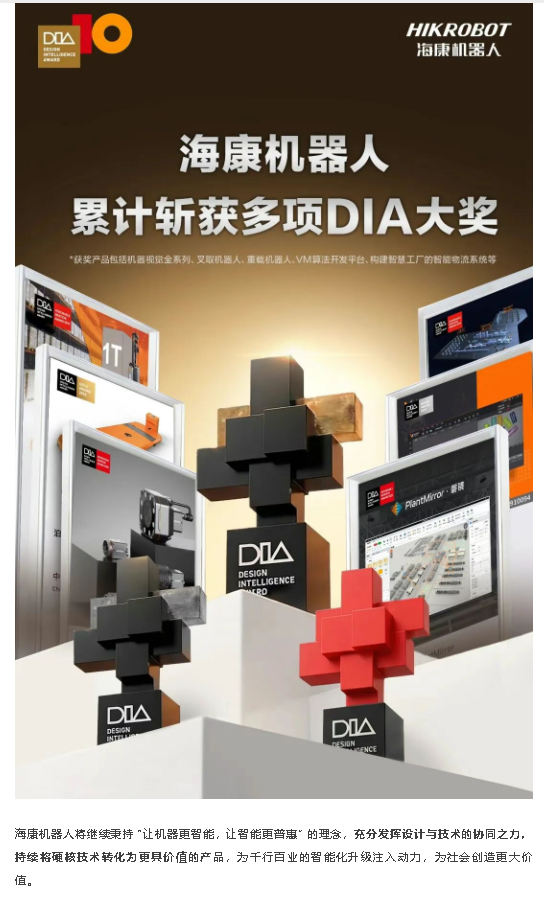 DIA十年,屢獲嘉獎 | 海康機器人兩款產品再獲第十屆中國設計智造大獎
